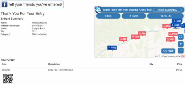 The Map is visible on the confirmation page (after checkout), and will display available accommodation close to the venue.