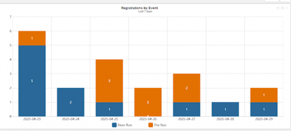 This graph will show the number of registrations per day; for the past 7, 30 or 90 days.