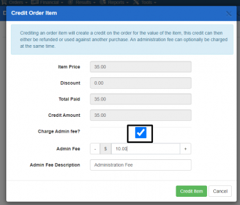 3. If the full amount isn't being refunded, tick Admin fee and add the amount being retained (not refunded).